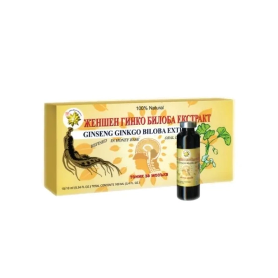 Жен шен + гинко билоба флакони за памет и жизнена активност 10мл х10